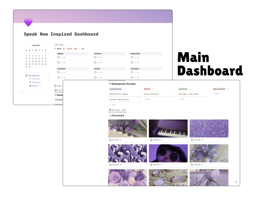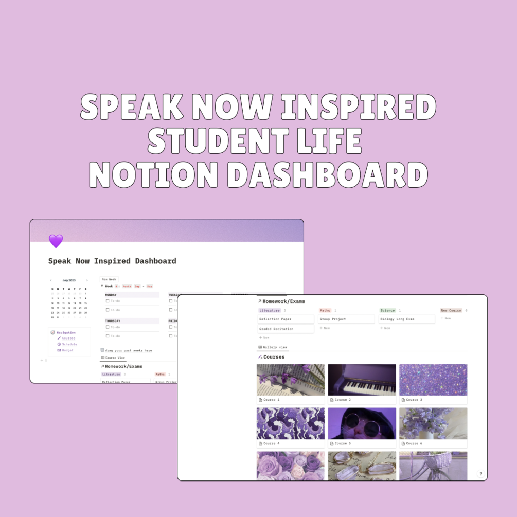 This Speak Now School Life Notion Dashboard is a great tool that can help you stay organized and on top of your schoolwork – while being inspired with Speak Now TV aesthetics!
